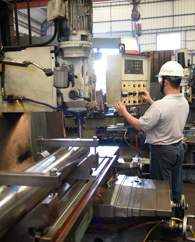 生産の場合には、弊社の技術グループは 部品の機械特性が精通するだけではなく、 購入した精密な加工設備の使い方も善用 致します。 例えば:カッティング、溶接、研削、 深穴加工などの設備で高性能機械の 製造を極めております。